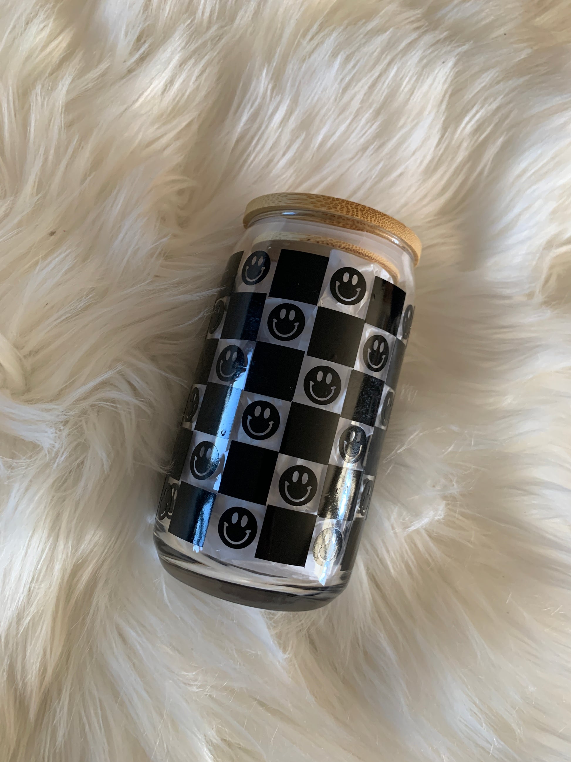 Includes bamboo lid and glass straw.